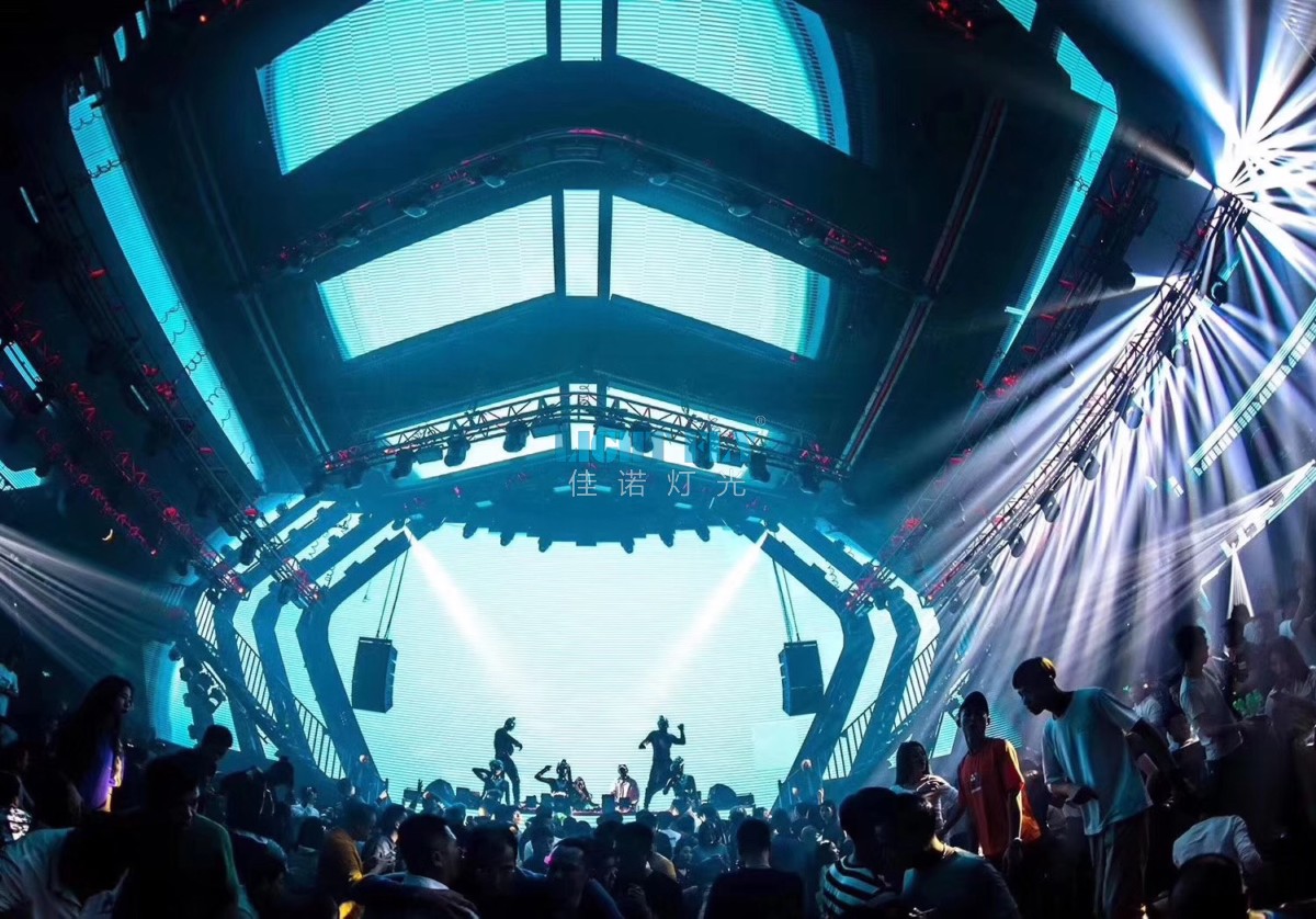 (3)酒吧燈光設計背景光。歌舞廳的背景會隨著表演者的不同而有所改變,每次改變都是因為美感或節(jié)目的需要。背景光就是要把這些背景物恰如其分突出出來,使它們?nèi)诤系奖硌葜腥?,烘托主題,常用背景燈有天幕燈、地幕燈、光束燈等。