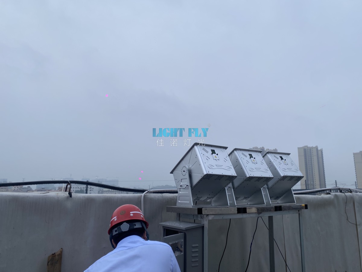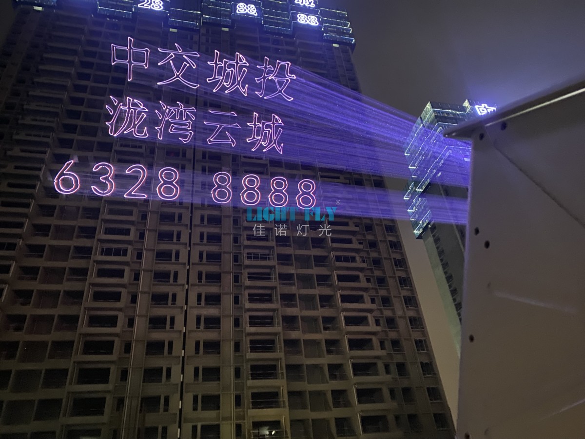 廣告地標激光燈成為房地產廣告夜晚最佳宣傳方式,實現(xiàn)了文字與動畫的絢麗結合,高亮度與多姿多彩的動畫效果,點亮夜晚,讓樓盤成為周圍最亮眼的明星,及宣傳了公司也讓售樓部的樓盤得到了宣傳,中交城投龍灣云城項目由佳諾燈光LIGHT FLY設計了廣告地標激光燈,在樓盤正中央設計了三臺防水廣告激光燈,每臺對應了相應的文字與廣告效果,讓周邊的客戶與來往的車輛一眼就了解了這個樓盤的優(yōu)點,實現(xiàn)了廣告與銷售雙結合,也得到了領導的一致滿意。廣州佳諾燈光設備有限公司是一家十五年從事智能化演藝燈光研發(fā)、生產、銷售、服務于一體的國家高新技術企業(yè)。其自主品牌【佳諾燈光LIGHT FLY】產品涵蓋專業(yè)舞臺燈光、LED演藝照明,文旅亮化等領域,廣泛應用于劇院、體育場館、電視臺及各種演出場所。