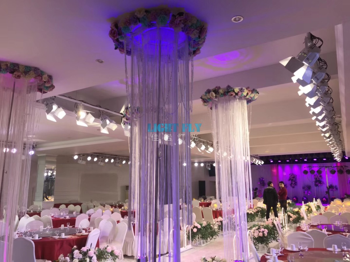 該工程面光采用LED舞臺(tái)洗光燈和搖頭燈,主要用于照亮舞臺(tái)前部區(qū)域,對(duì)舞臺(tái)上的表演者起到正面照明的作用,供人物造型用或使舞臺(tái)上的物體呈現(xiàn)立體效果。頂光采用LED影視柔光燈和搖頭燈,其作用是對(duì)舞臺(tái)縱深的表演空間進(jìn)行必要的照明。側(cè)光采用LED影視柔光燈,其作用是從舞臺(tái)的側(cè)面造成光源的方向感,為主演區(qū)演員塑造層次及立體感。可以作為照射演員面部的輔助照明,并可加強(qiáng) 布景層次,對(duì)人物和舞臺(tái)空間環(huán)境進(jìn)行造型渲染??梢詮?qiáng)調(diào)、突出側(cè)面的輪廓,適合表現(xiàn)浮雕、人物等具有體積感的效果。單側(cè)光可表現(xiàn)出陰陽(yáng)對(duì)比較強(qiáng)的效果。雙側(cè)光可以表現(xiàn)具有個(gè)性化特點(diǎn)的夾板光,但需要調(diào)整正面輔助光與側(cè)光的光比才能獲得比較完善的造型效果。逆光采用LED影視聚光燈,加強(qiáng)舞臺(tái)人物造型及景物空間的照明。前后排燈光相銜接,使舞臺(tái)表演區(qū)獲得比較均勻的色彩和亮度。為了更好的表現(xiàn)演出效果,模擬自然界的真實(shí)場(chǎng)景還分別在舞臺(tái)上設(shè)置了數(shù)碼煙機(jī)和大泡泡機(jī)。