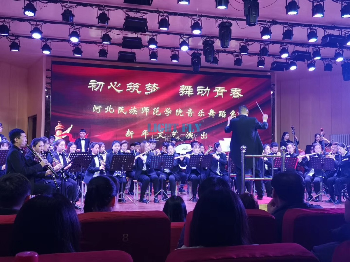 佳諾燈光LIGHT FLY為學(xué)院音樂舞蹈系的舞臺提供設(shè)計.安裝.調(diào)試舞臺燈光,為學(xué)院演出和排練的燈光秀提供最新的LED智能燈具。廣州佳諾燈光設(shè)備有限公司配備十二年專業(yè)舞臺燈光設(shè)備產(chǎn)品研發(fā),生產(chǎn),銷售,舞美設(shè)計,以及安裝調(diào)試為一體全方位服務(wù),以“專業(yè)鑄造精品,創(chuàng)新引領(lǐng)潮流”為宗旨為需要舞臺燈光設(shè)備的您們提供高品質(zhì)性價比的產(chǎn)品與服務(wù)。