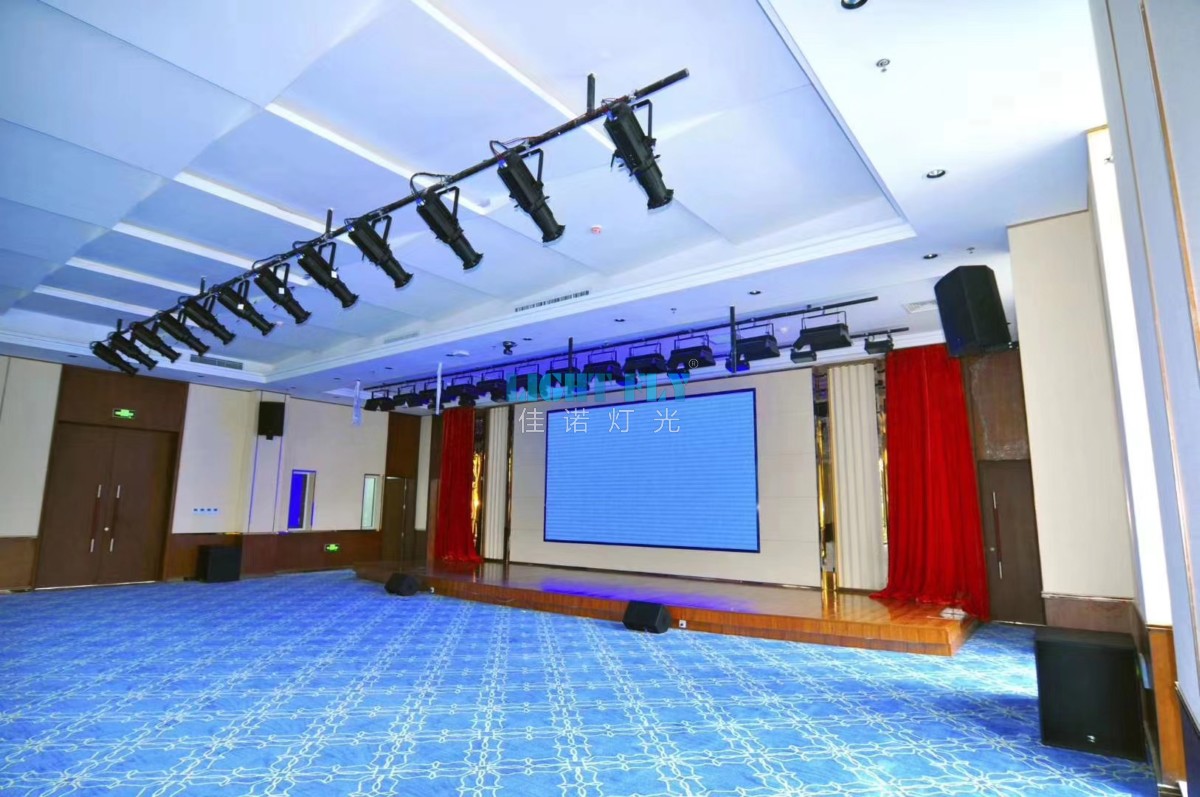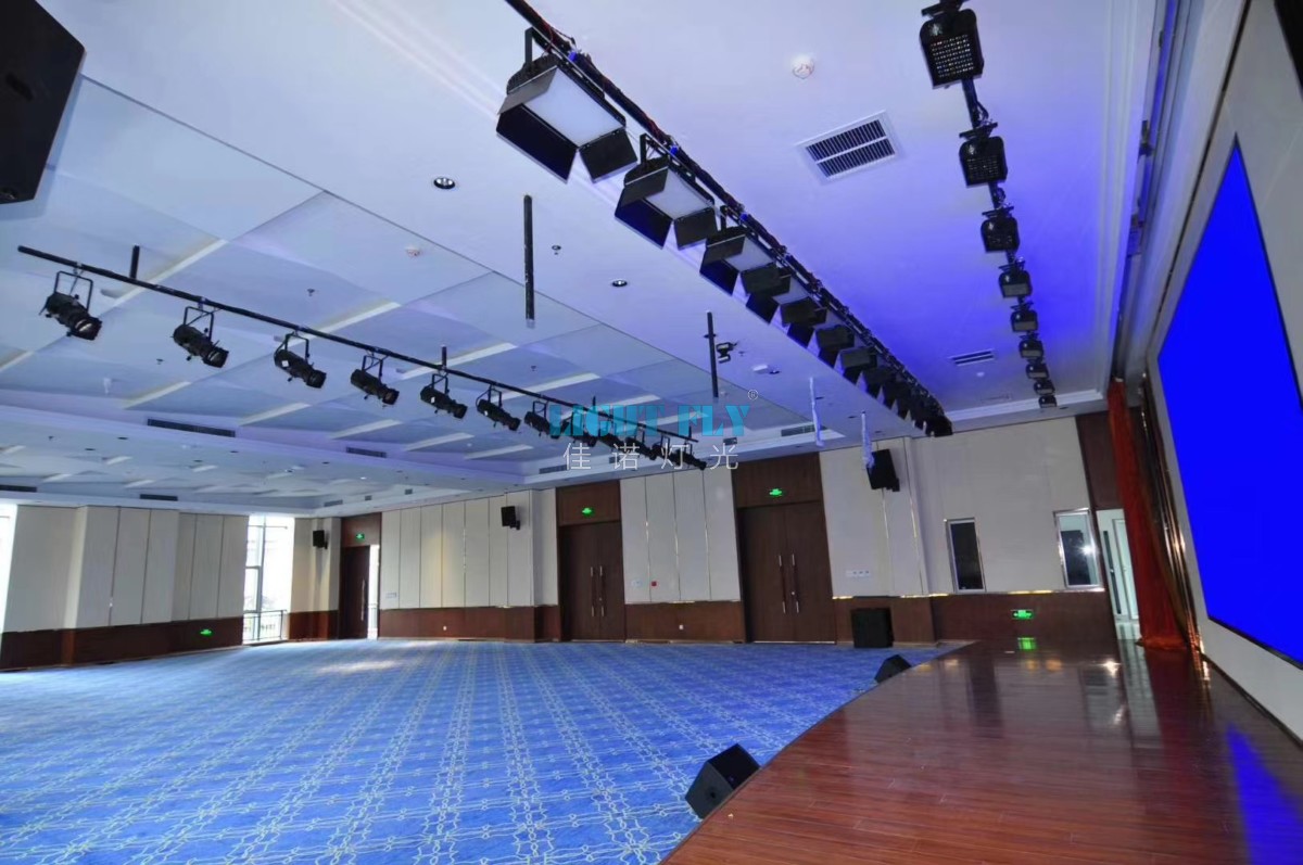 2020年5月20號(hào),全新的智能的報(bào)告廳和會(huì)議室燈光安裝調(diào)試完畢,全部采用佳諾燈光LIGHT FLY的會(huì)議室燈光:200W影視LED成像燈12臺(tái),三基色LED會(huì)議廳24臺(tái),金剛1024控制臺(tái)1臺(tái),放大器兩臺(tái)等燈光控制臺(tái)設(shè)備,現(xiàn)場(chǎng)效果: