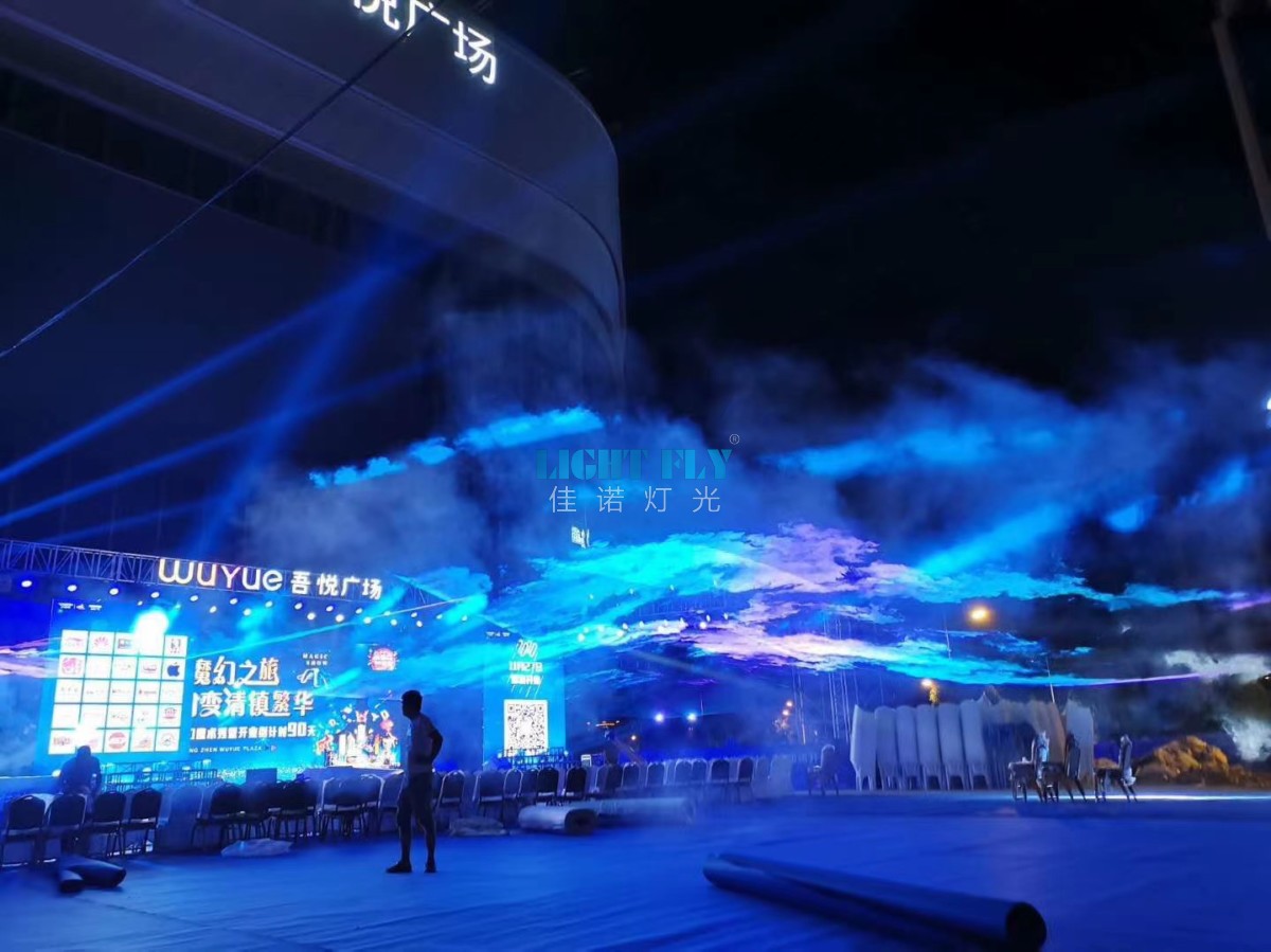 四臺(tái)30W北極光激光燈亮相“吾悅廣場(chǎng)”