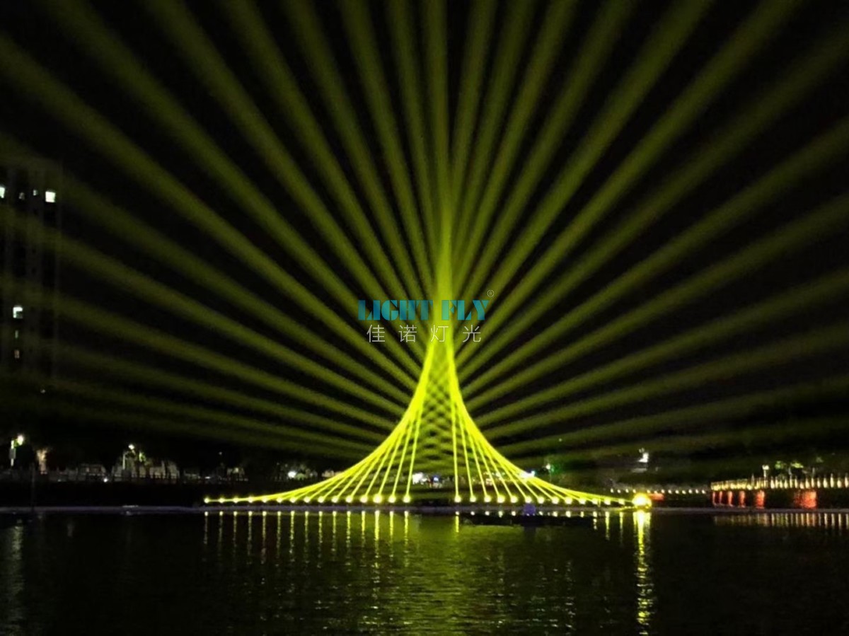 佳諾燈光LIGHT FLY在酒店人工湖中設(shè)計(jì)了32臺(tái)380W防水光束燈,采用兩邊各放置16臺(tái)通過老虎控制臺(tái)打造美輪美奐的光束效果,讓每位來旅游的有客戶在夜晚感受一份震撼的燈光盛宴,酒店還配備了2臺(tái)60W全彩地標(biāo)激光燈打造極光秀,絢麗的激光燈效果得到了游客們的熱情拍照與留念,廣州佳諾燈光設(shè)備有限公司是一家十二年從事智能化演藝燈光研發(fā)、生產(chǎn)、銷售、服務(wù)于一體的國家高新技術(shù)企業(yè)。其自主品牌【佳諾燈光LIGHT FLY】產(chǎn)品涵蓋專業(yè)舞臺(tái)燈光、LED演藝照明,文旅亮化等領(lǐng)域,廣泛應(yīng)用于劇院、體育場館、電視臺(tái)及各種演出場所。