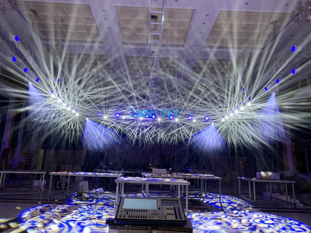 2.舞臺燈光配置要求:舞臺燈光效果沒有固定的模式,由于舞臺燈光使用功能的多樣性,演出風(fēng)格有所不同所需要的燈光效果也不同,所以在設(shè)計(jì)的時(shí)候應(yīng)將各種類型的舞臺燈光配齊整個(gè)舞臺主要配備了16臺440W光束圖案燈,美輪美奐的圖案燈光效果鋪滿整個(gè)大廳舞臺,讓每位來酒店的客戶感受到燈光的魅力。