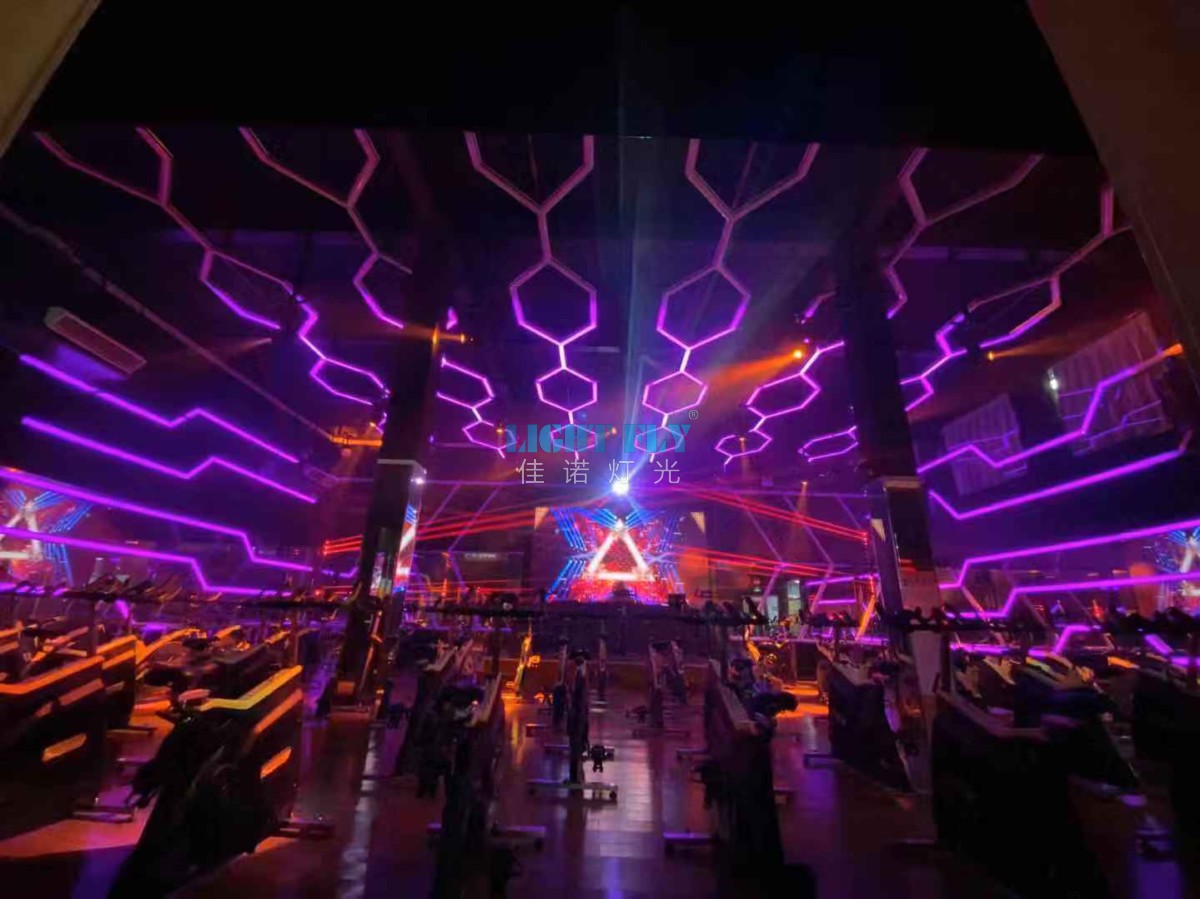 近幾年健身行業(yè)尤為繁華,隨著安康生活理念日益不得人心,許多人也將健身視為生活的一部分,馬甲線與八塊腹肌成為許多人的追求。那么每次去健身的時候,你留意過健身房燈光了么?很多朋友都會反應(yīng),健身房燈光太刺眼,有些健身項目的燈光并不是太合適,那么怎樣裝好一個恰到好處的健身房燈光呢?單車室:用燈光引發(fā)激情磅礴動感單車空間的設(shè)計:能夠采用聲控以及互動的控制系統(tǒng)使得運動、音樂、燈光有機結(jié)合,用燈光效果帶動單車空間的激情氣氛;佳諾燈光LIGHT FLY搭配了一套智能健身房燈光系統(tǒng):100W搖頭LED光束燈,100W搖頭LED圖案燈,LED全彩燈帶,2W動畫激光燈,LED面光燈,麥爵士軟件一套,智能燈光系統(tǒng)一套,薄霧機等燈光控制臺,打造一個全新的節(jié)能健身房燈光秀,炫酷的燈光效果讓每位健身達人更加精力充沛。
